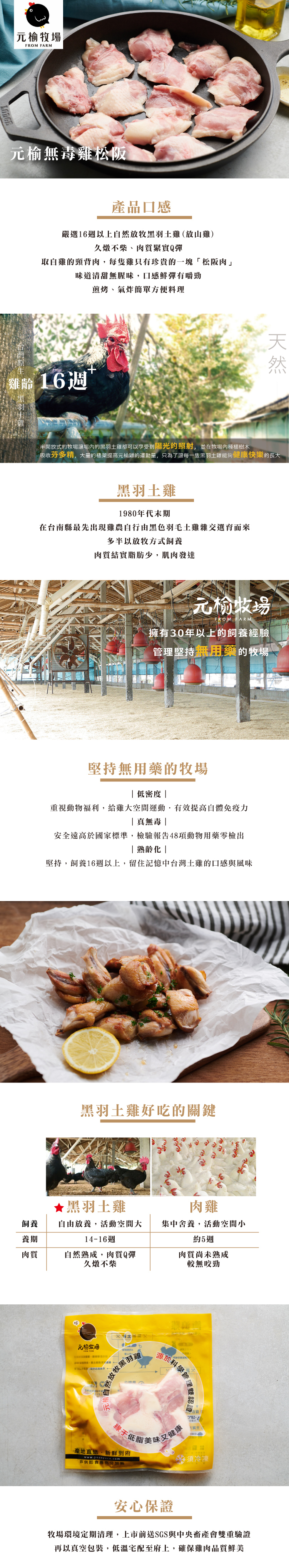 ■ 商品品名:元榆無毒雞松阪(土雞)