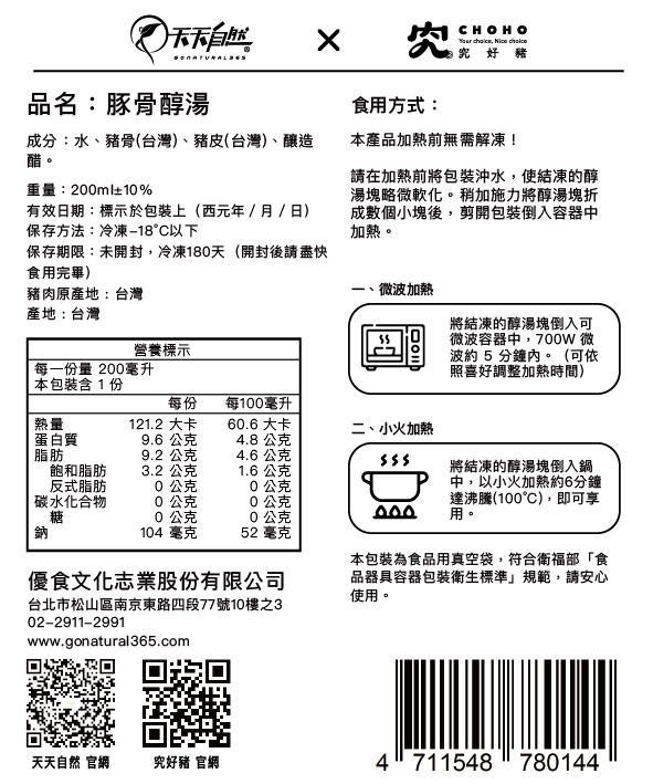 ■ 內容物名稱(成分):水、豬骨(台灣)、豬皮(台灣)、釀造醋